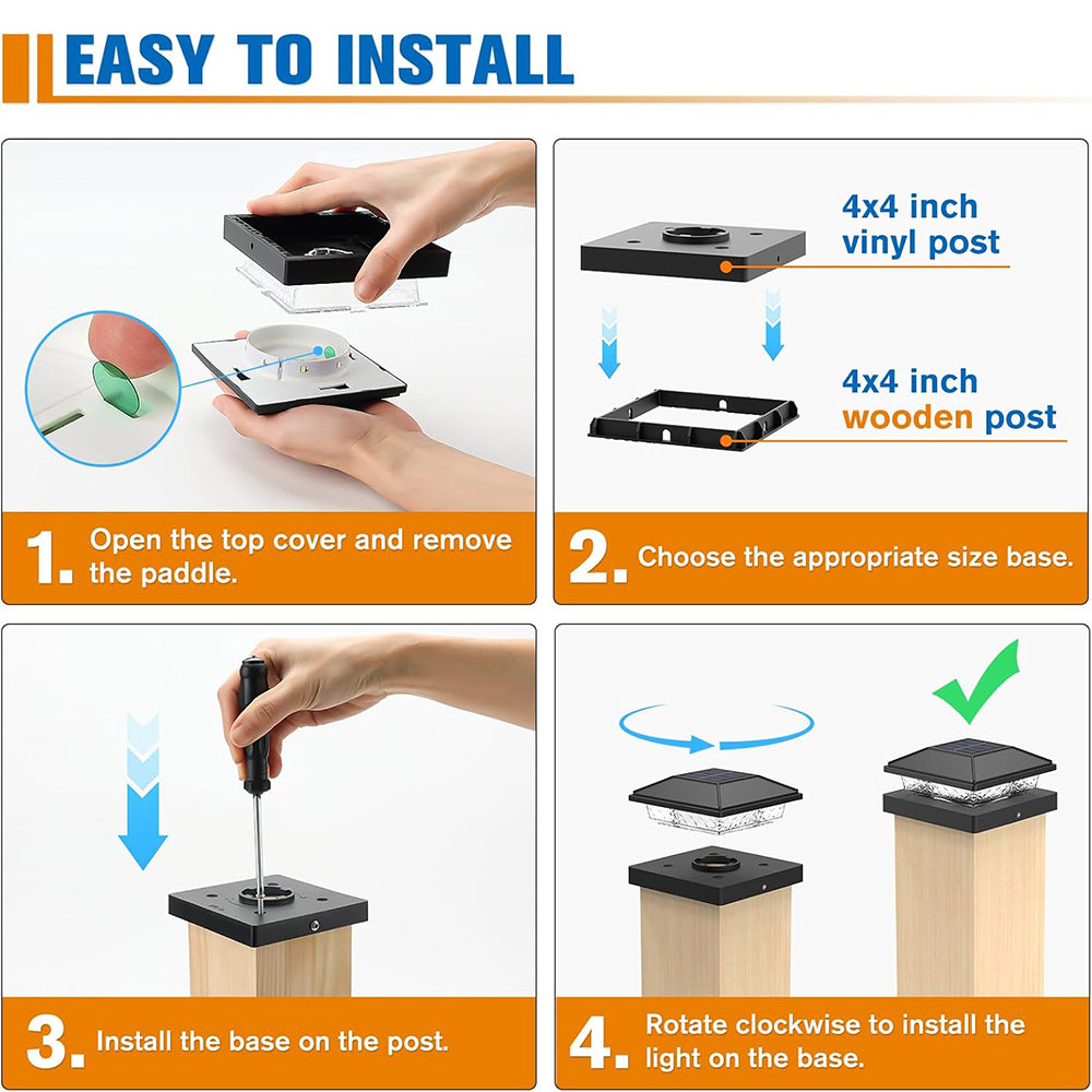 - Quick & Easy Installation: Install easily on 4x4” fence and deck posts with no wiring required. The included screws ensure a fast, secure, and simple setup, making it ideal for DIY installation.
