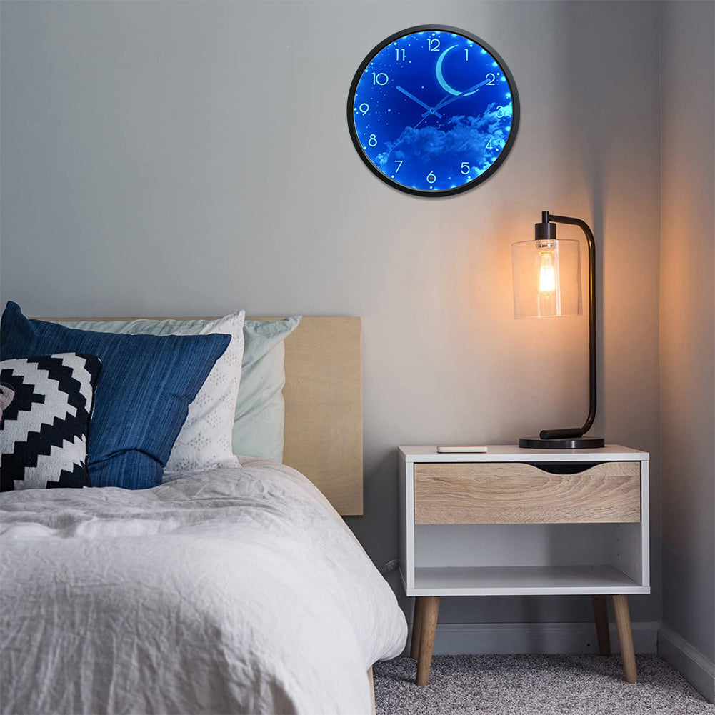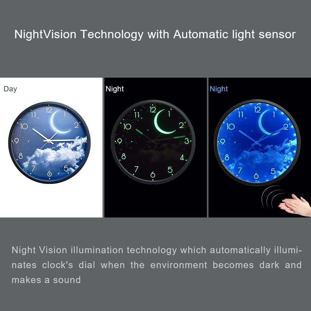 OCEST 12 Inch Night Light Wall Clock Battery Operated (Moon)