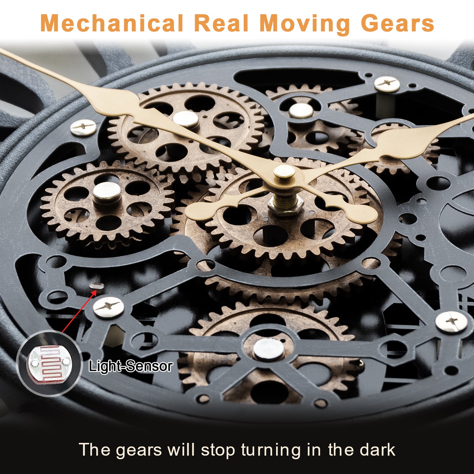 - Unique Design: This clock features a vintage and industrial style with three-dimensional embossed big numbers and real mechanical gears, effortlessly catching everyone's attention. Perfect for living rooms, dining rooms, bedrooms, bars, offices, cafes, and indoors.