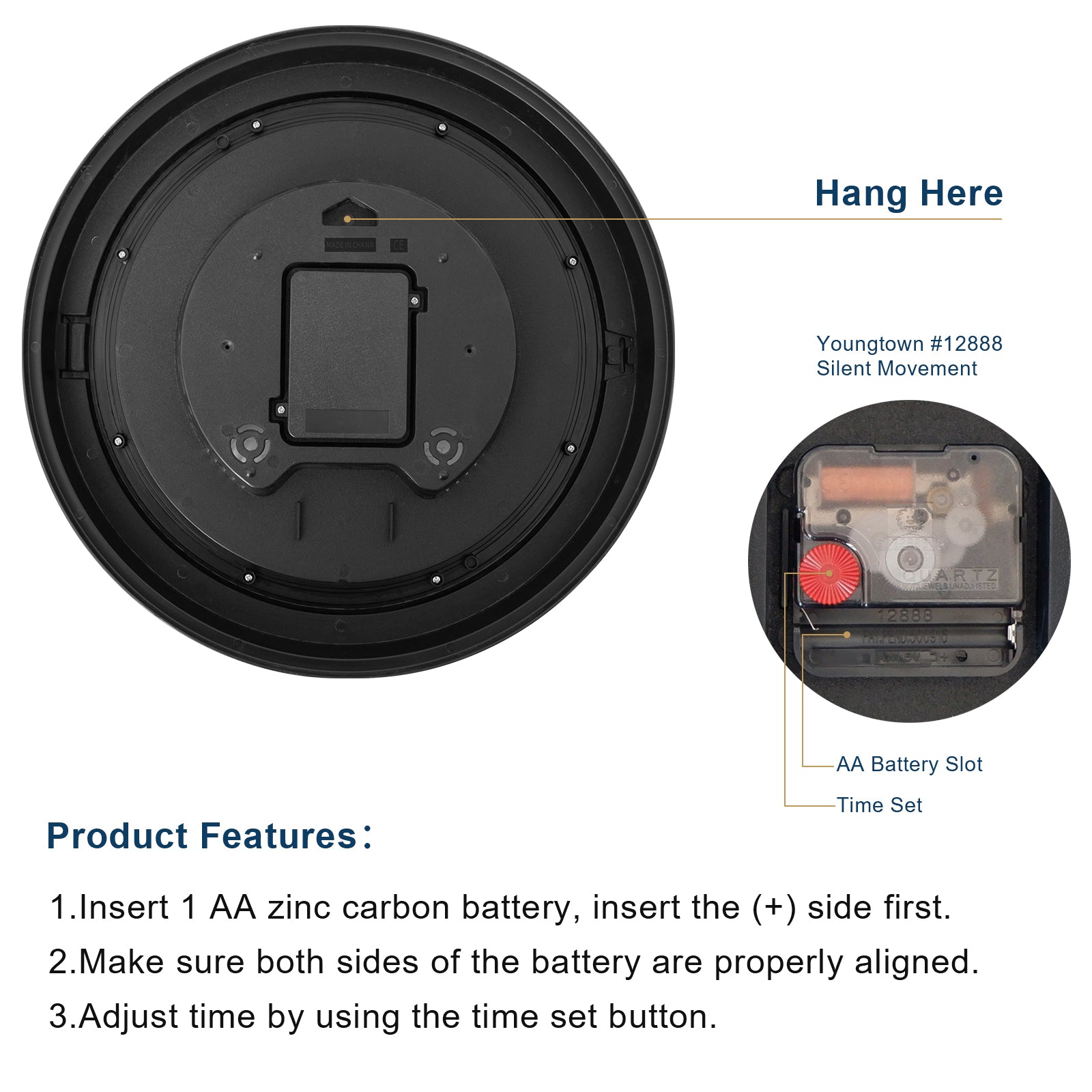- Enjoy Peace & Quiet: Our non-ticking clock features premium quartz movement, providing a comfortable, quiet environment without any annoying ticking noise. AA x 1 battery powers the movement (not included).