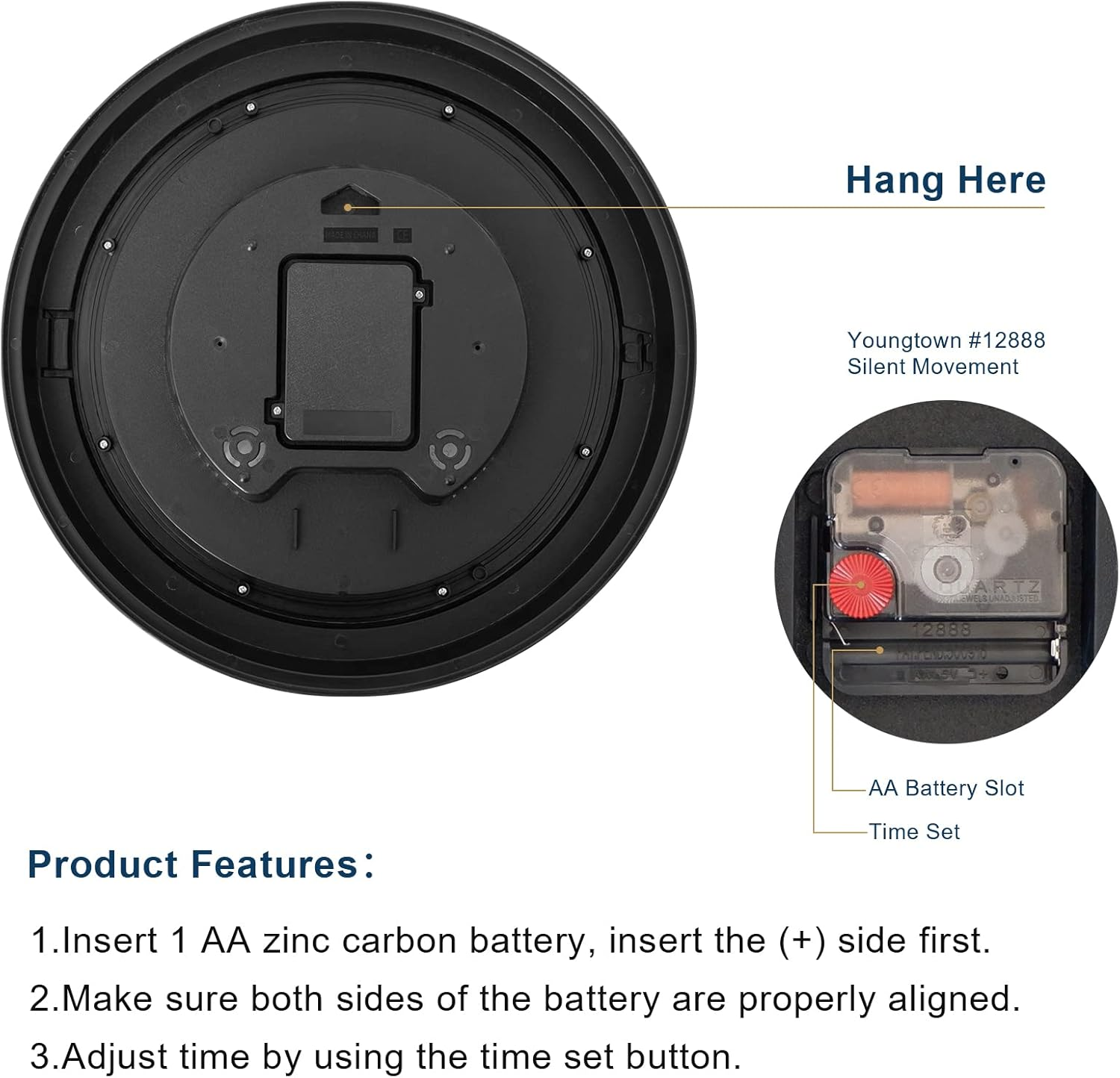- Non-Ticking & Precise Time: The non-ticking wall clock comes with premium quartz movement, providing a comfortable quiet environment without any annoying noise in the meantime