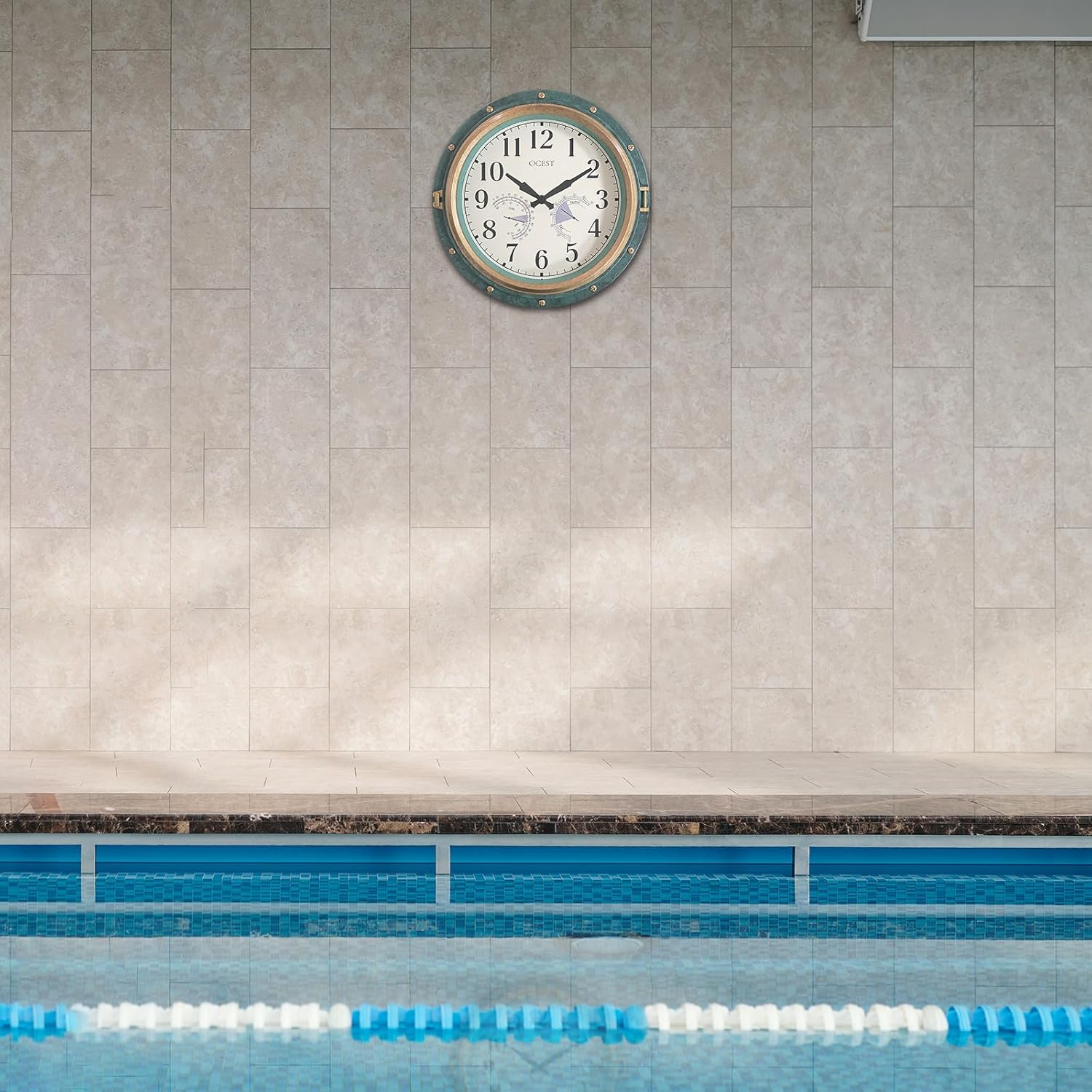- Waterproof & Weatherproof Function: Designed with waterproof rear cover & front rubber seal to prevent clock from raining, sun-shining and other terrible weather, suitable for hanging in your garden, patio, balcony, hence, lounge and pool, etc
