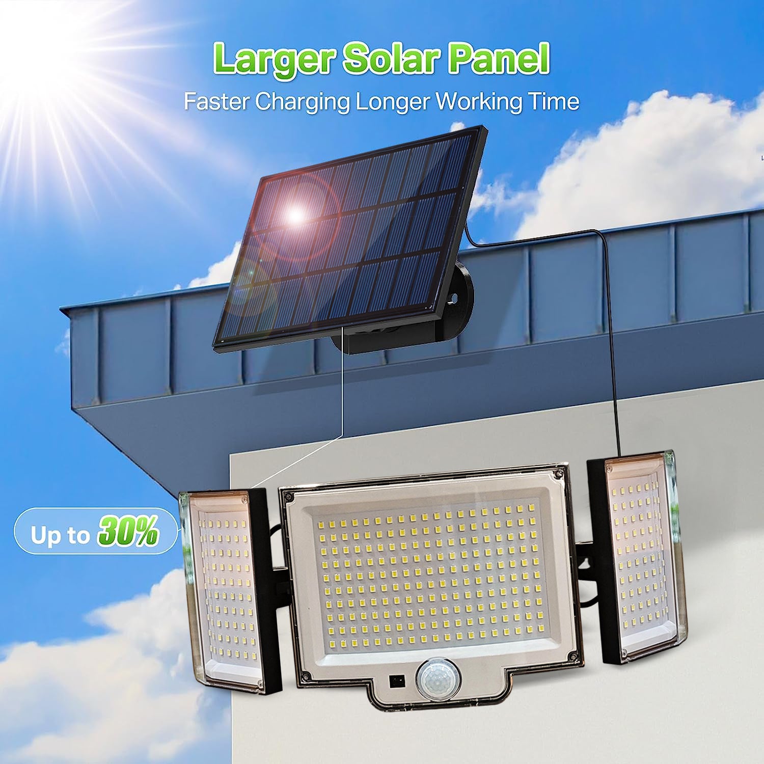 Upgraded PIR Motion Sensor Outdoor Lights: Compared with most solar motion lights, our solar outdoor motion sensor lights are equipped with biger solar panel and luminous surface to meet your various lighting needs.