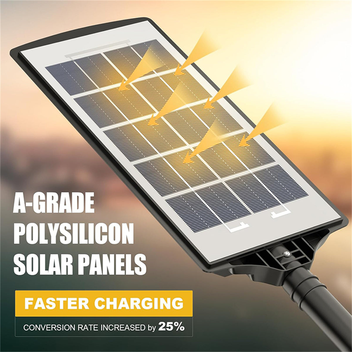 - High-Lmpact Brightness: Our solar lights outdoor adopts enhanced brightness imported 5730 LED beads SMD, low light decay, beads life can reach 6 years. The brightness is 80% enhanced than other solar street lights of the same size. Can light up your garage, yard, garden, parking lot,street.